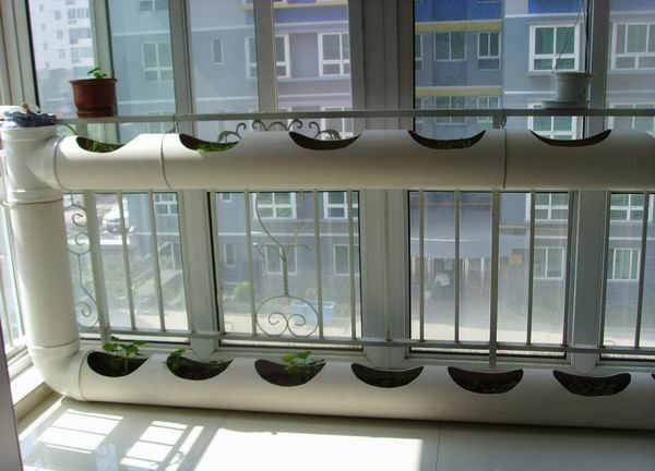 其實陽臺內完全可以打造成自家的莊稼地,裝修時已經對陽臺做過防水處理,那么我們就可以直接自己動手種菜嘍。在陽臺上種菜,我們可以選用PVC管作為花盆,栽種一些耐活的蔬菜懸掛在陽臺欄桿護欄上,如果您家是開放式無窗陽臺,還可以將PVC花盆掛在陽臺外側。具體做法如下: